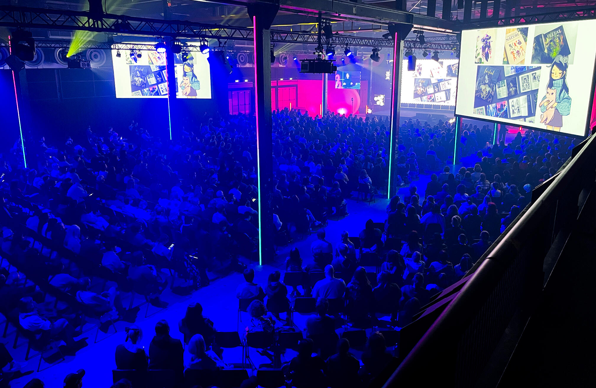 The top section features a gallery of my work, whilst the bottom section contains images of products, photos from events and pages from my art book.